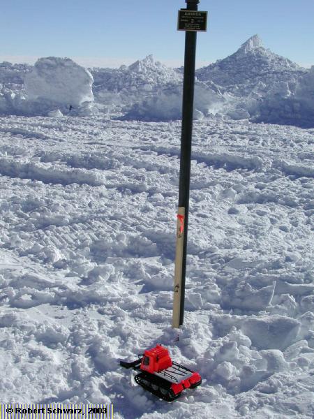 Special care was necessary around the actual AMANDA holes, marked by a metal pipe.