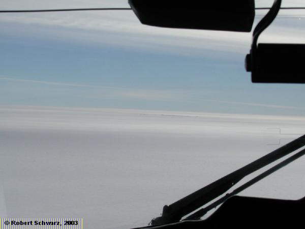 The Amundsen-Scott South Pole Station coems to view. Flying to the Pole makes you realize how isolated this little oasis really is.