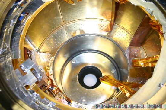 View from the bottom into the open cryostat.